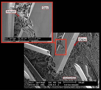 Gipskristalle wachsen durch Materialeinbau im Wurzel- bereich